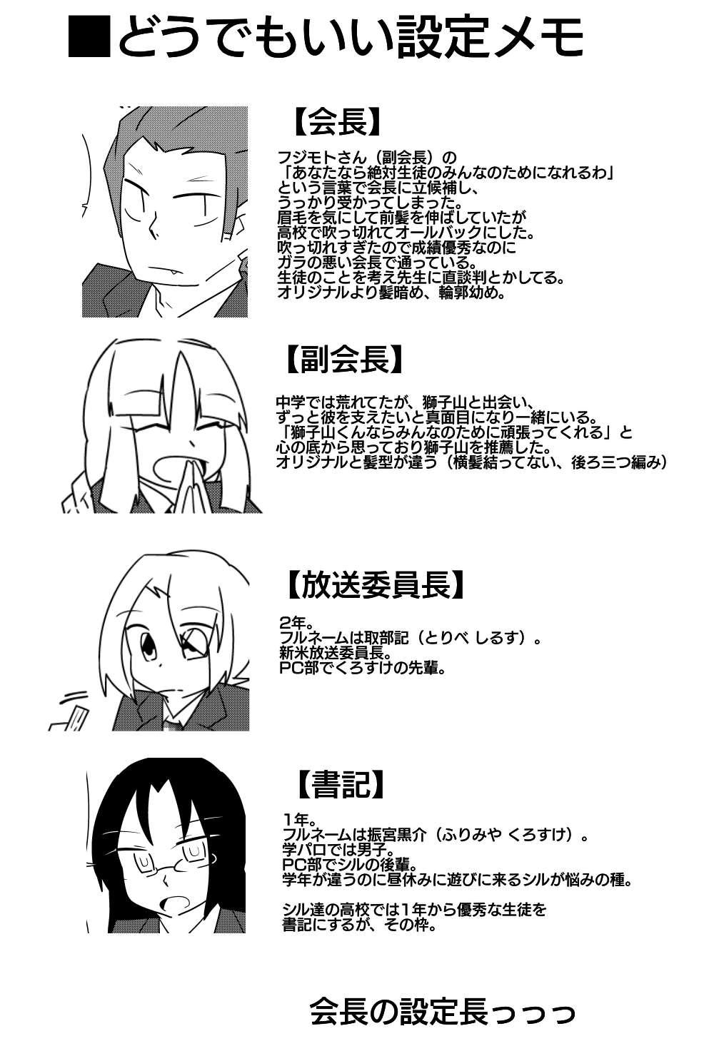 【シル】 「ボクと一緒に自分の存在価値を探そうよ!」 特別保安部のくろすけのバディとして新規配属された少年。 組織の中では一応くろすけより先輩にあたるが、抜けているためあまり慕われていない。 天然で細かいことは気にしない。また、構ってちゃん。 大食いでもありカレーが大好物。 職場の中で迷うレベルの方向音痴。 一人称:ボク/二人称:君・(名前) 性別:男 年齢: 13歳ぐらい 誕生日:4月5日 身長:150cm/体重:45kg 血液型:O型 好物:カレー 趣味:ゲーム |