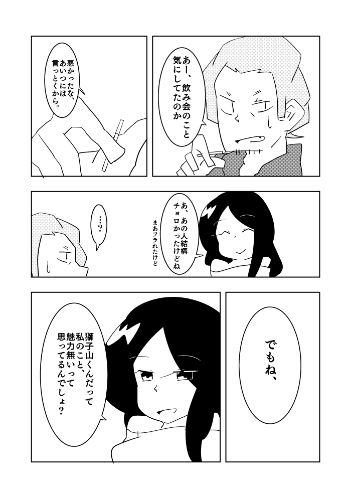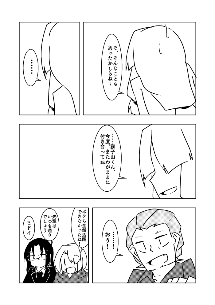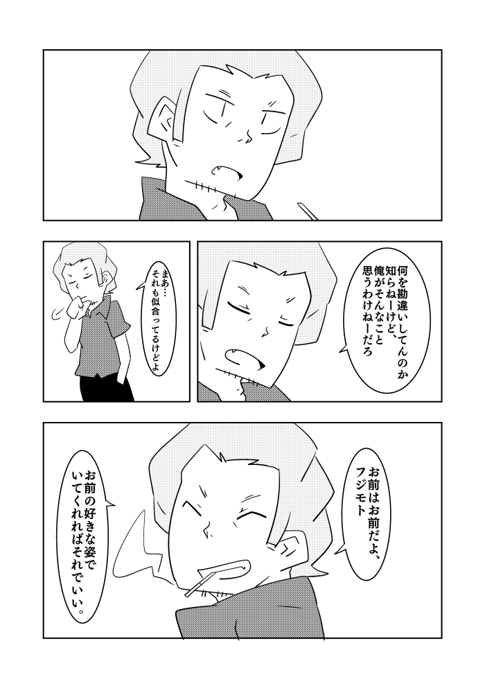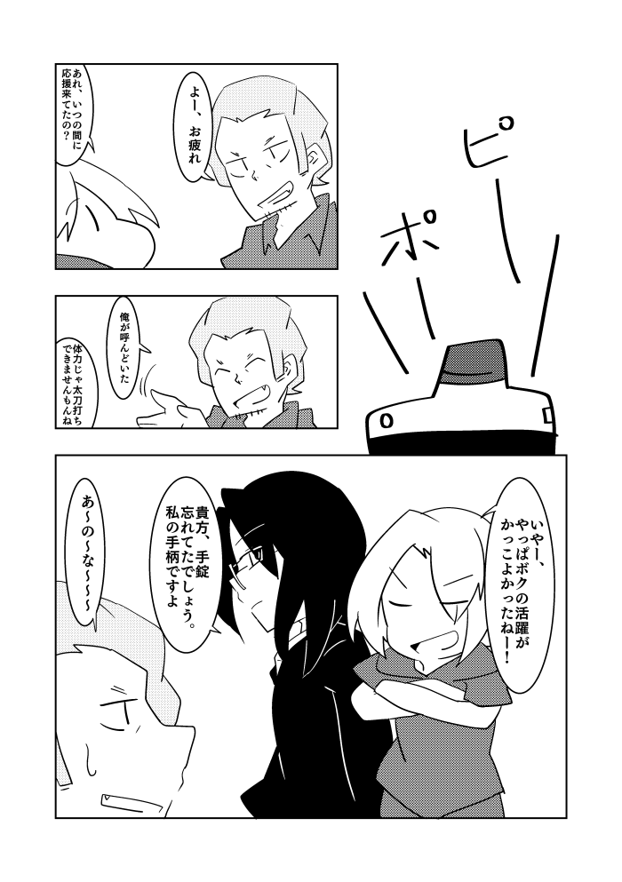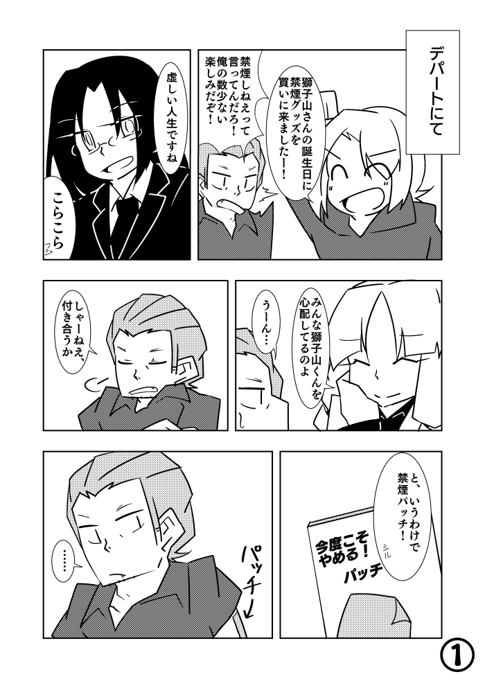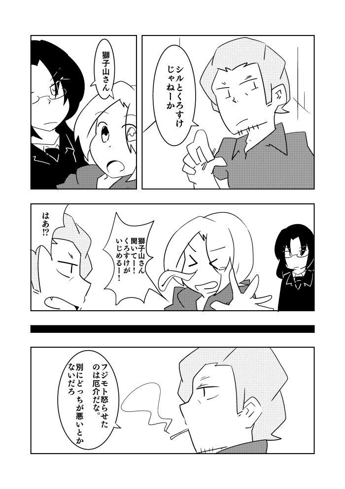 【獅子山】 「ちげーよ心配だから忙しい中来てやったんだろうが」 特別保安部所属のエンジニア。 前の部署では不正を行っていた上司に楯突き嫌われ飛ばされた。 特別保安部では珍しい人間の職員。 煙草に染髪、無精髭と駄目人間に見えるが常識人。 面倒見も良くくろすけを気に掛けている。 30代前半の頃にフジモトとチームを組んでおり、仲が良い。 一人称:俺/二人称:お前 性別:男 年齢:39歳 誕生日:3月8日 身長:180cm/体重:70kg 血液型:A型 好物:煙草 趣味:ゲーム 種族:人間 |