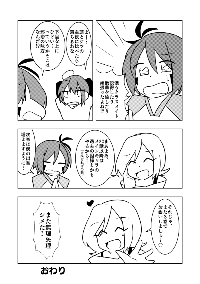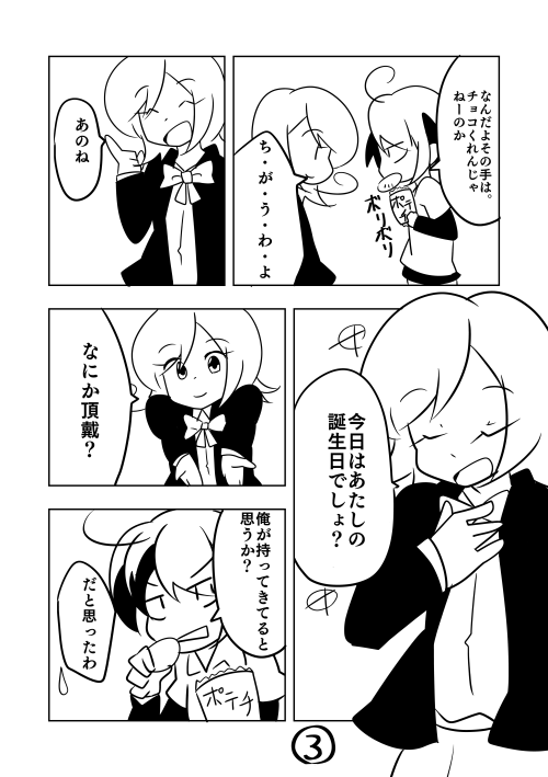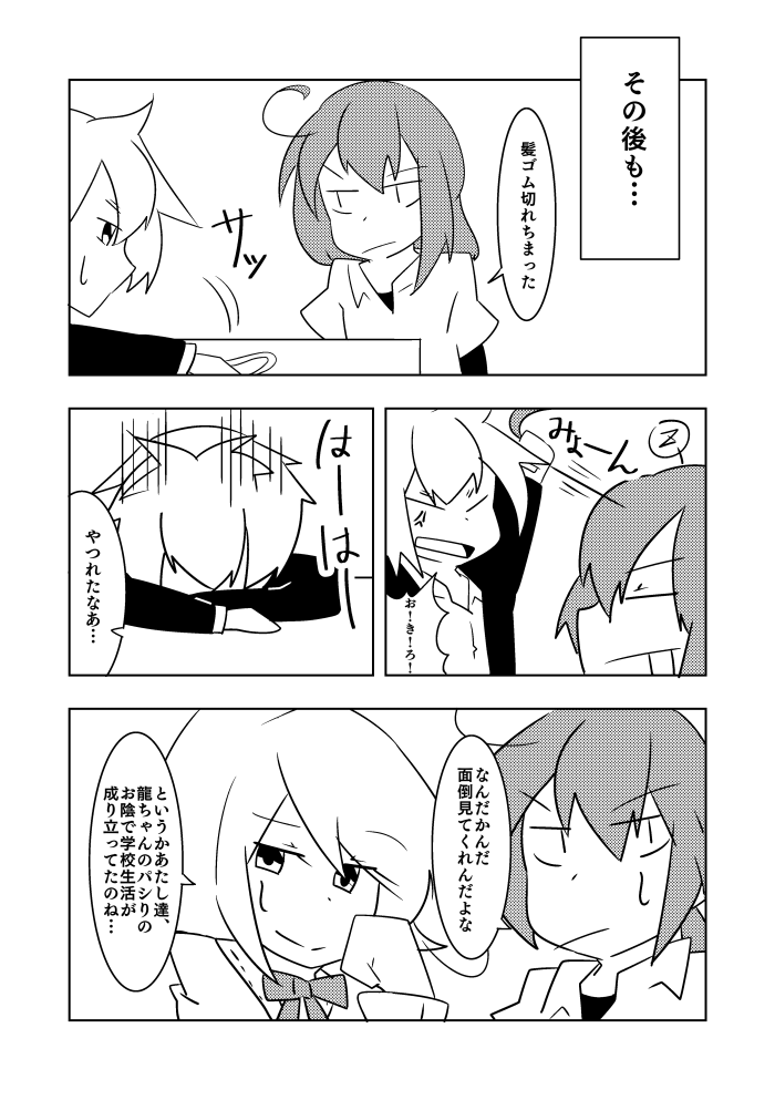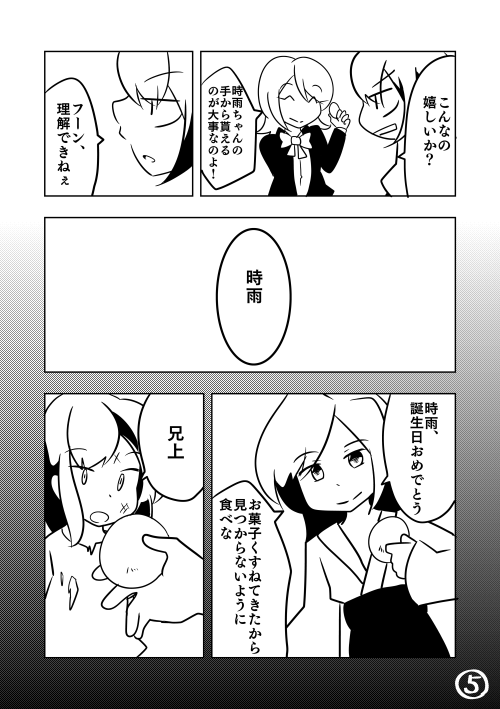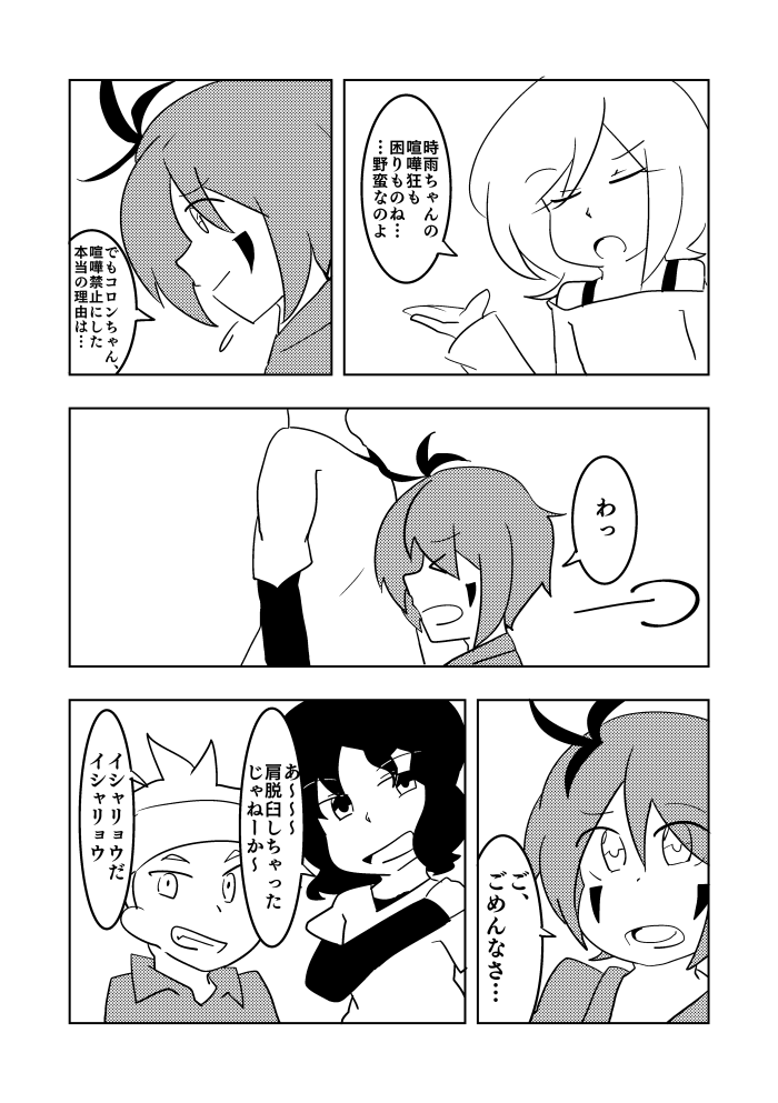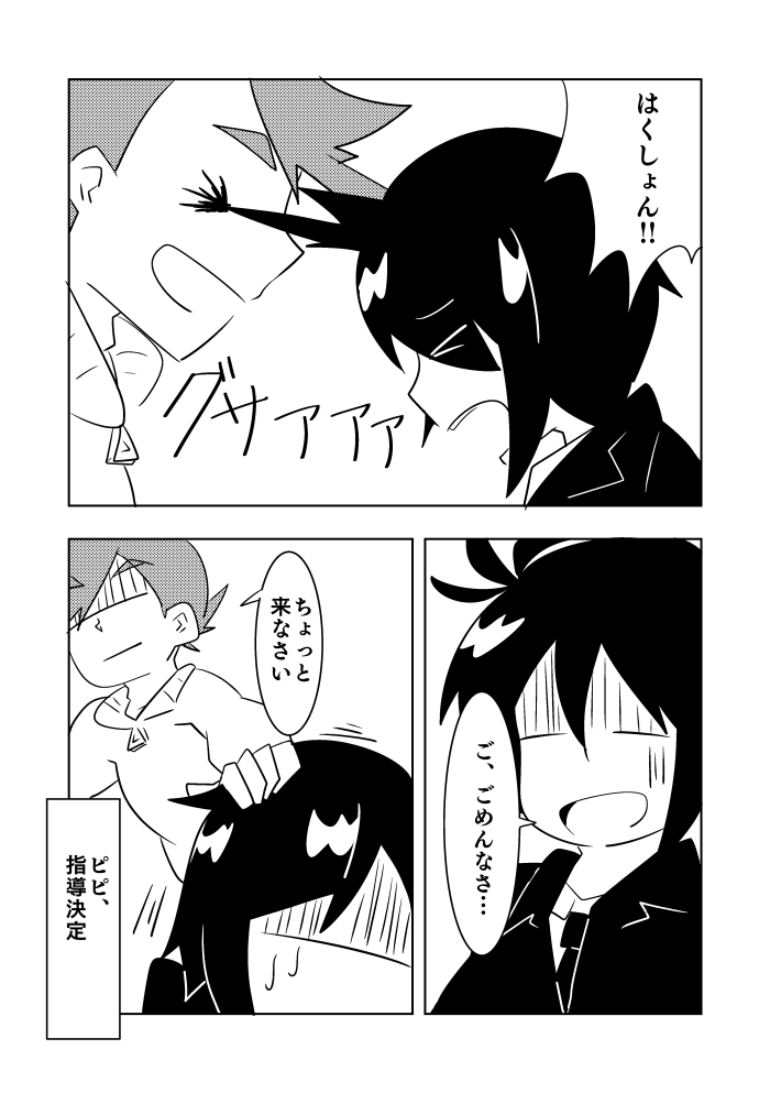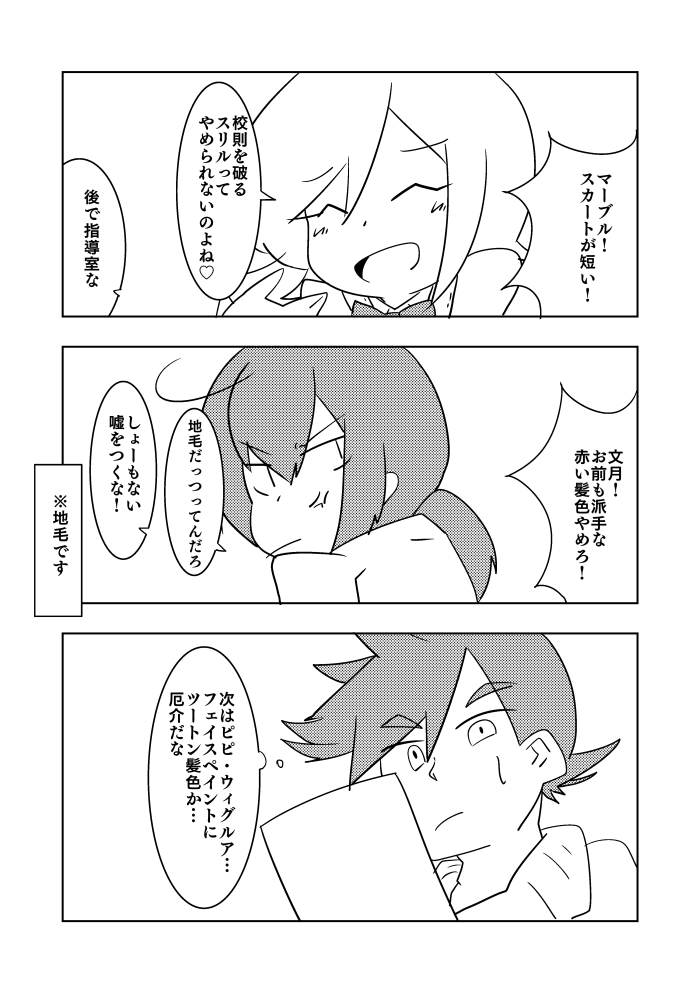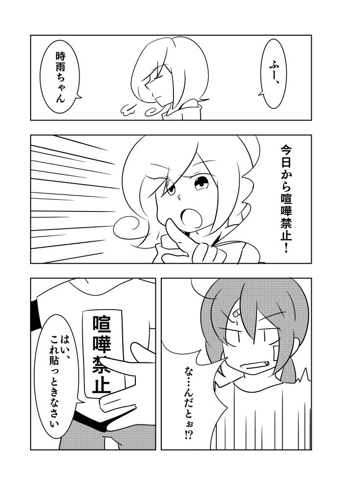 【時雨(文月時雨/ふみつき しぐれ)】 「ぶっ殺されてーヤツからかかってきやがれ!」 下界に降りてきたピピの人探しに協力してくれた不良少年。 中学生にして負け無しのケンカの強さらしい。 短気で粗野だが面倒見は良く、実は苦労人。 インスタント食品が主食。 一人称:俺/二人称:おめー・テメェ 学年:中学1年 誕生日:10月28日 身長:155cm/体重:53kg 血液型:O型 好物:カップ麺 得意な教科:無し |