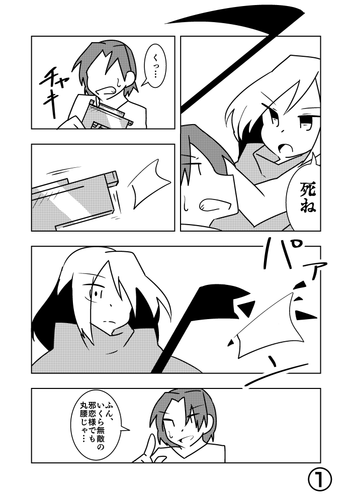 【邪恋(じゃれん)】 「……失せろ」 天界で指名手配中の凶悪犯罪者。 自分に関わった者をほぼ例外なく殺している。 右の腕を失ってからは下界に身を潜めている。「邪恋」は通り名。 無口で不愛想。妹がいるらしい。 一人称:俺/二人称:貴様・お前 年齢:403歳 (外見16歳) 誕生日:6月9日 身長:169cm/体重:51kg 血液型:O型 好物(?):武器 |